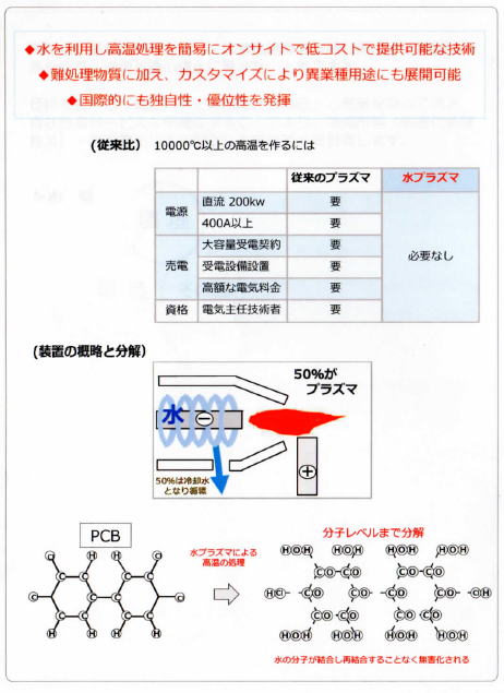 本事業は1985年にチェコスロバキアにて開発された水プラズマ発生技術を応用し、